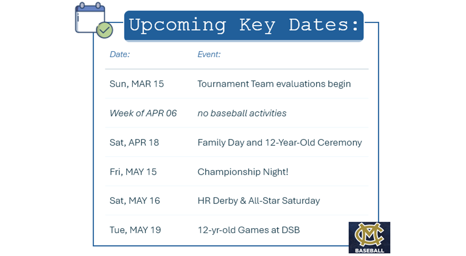 Reminder that 2025 Summer Tournament Team tryouts are Sunday, MAR 23 and Sunday, MAR 30.